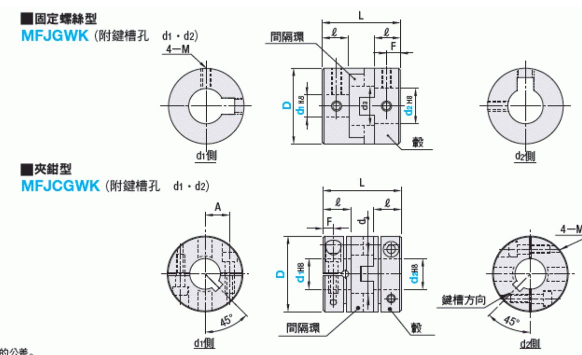 根据图片中的技术图纸,这是固定螺丝型(Set Screw Type)和夹钳型(Clamp Type)的梅花型联轴器(Jaw Coupling / Spider Coupling)。